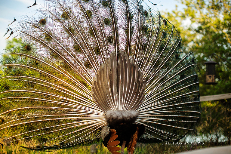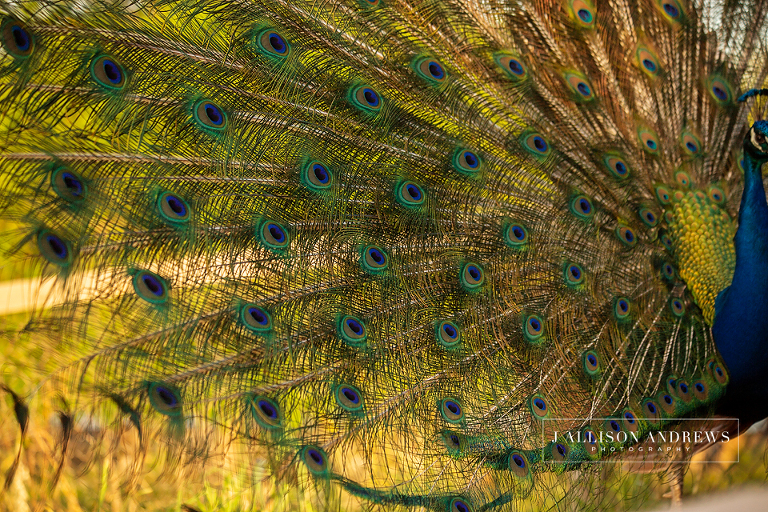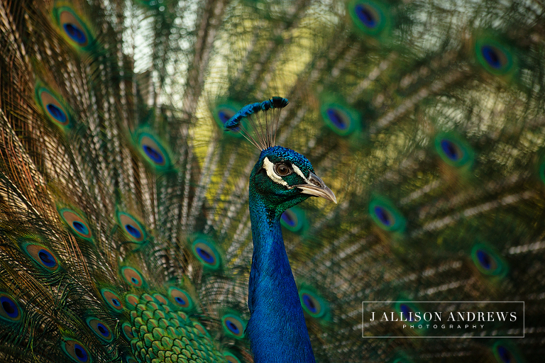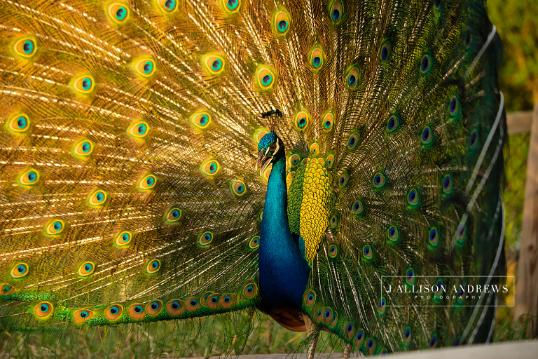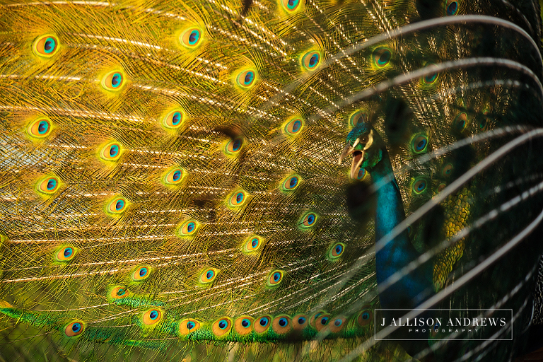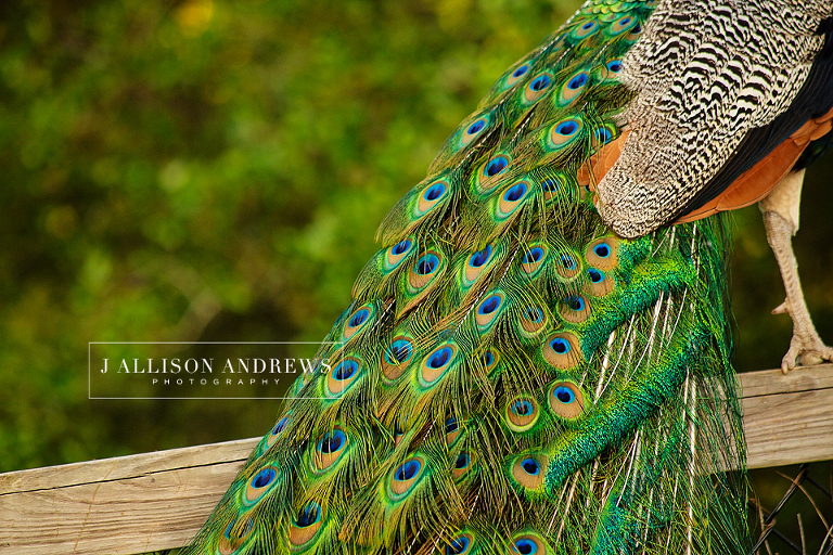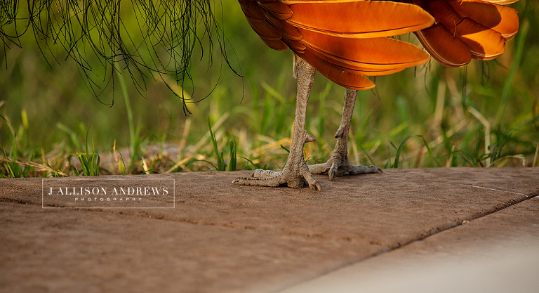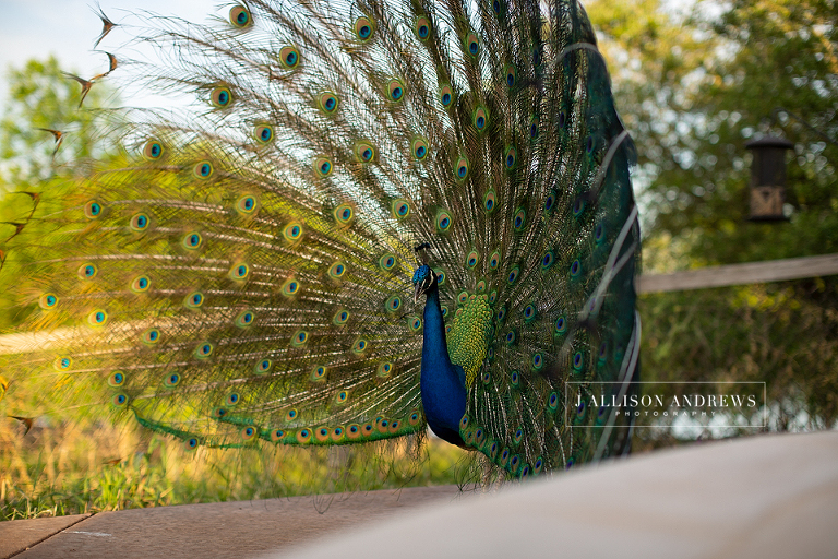 I take TONS of videos and pictures of them, all the time. It doesn’t get old because I am never bored of their beauty or intriguing behavior. Springtime is particularly fun because the males really hone their strutting techniques. Constantly unfurling their brilliant feathers in hopes of gaining the female’s attention – and also the humans’ – they are truly captivating. I rarely have my real camera out but tonight Sturgill was around the pool near the bird feeders and I dropped what I was doing to catch some really neat shots of him. He performed for me for probably a half hour. I also captured some unique video of him as well.