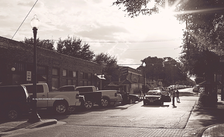 My goals for the night were to test the lighting with my “clients” and figure out where exactly I wanted to conduct my mini sessions in the next few weeks and then to celebrate my husband’s 42nd birthday – all in the Bishop Arts District. The Bishop Arts District is in Oakcliff, an old area of Dallas that has been revitalized with the coolest shops and hippest restaurants. It is charming and trendy yet still maintains that sense of old Dallas – not stuffy or pretentious. The streets are lined with trees and lights adorn some of the buildings….lots of orange brick, colored doors and painted murals. It just feels so alive.