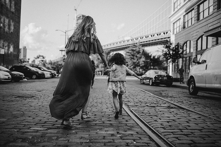 Last week I had the amazing opportunity to mentor with a husband/wife family photographer team in Brooklyn, New York.  I love their candid, journalistic style of shooting and editing so I chose them for a one-on-one mentorship.  We shot in a hip, trendy area of Brooklyn, NY – the DUMBO (Down Under the Manhattan Bridge Overpass).  And it was such a nice break from the 100 degree Texas heat.